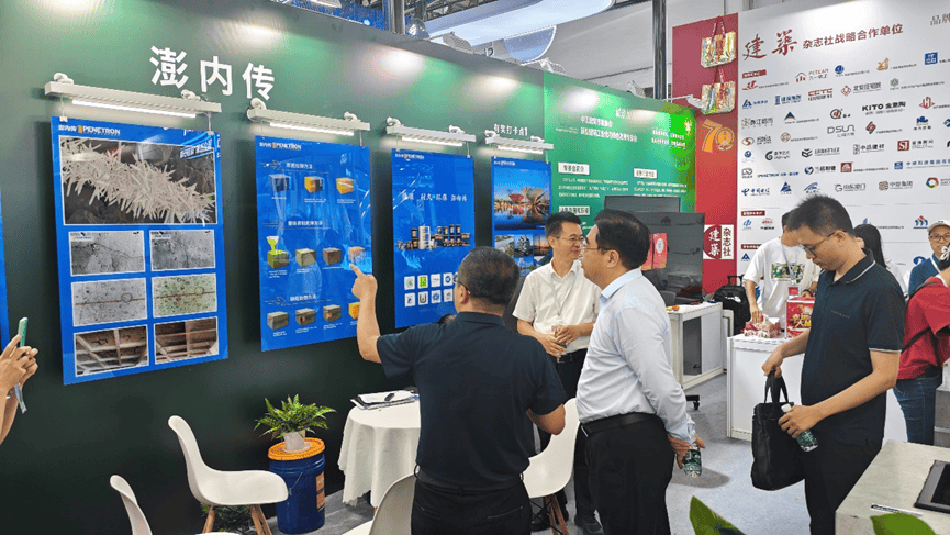 北京澎內(nèi)傳公司展出了全球領(lǐng)先的混凝土滲透結(jié)晶自愈合技術(shù)以及系統(tǒng)產(chǎn)品,展板上生動(dòng)形象的展現(xiàn)出滲透結(jié)晶的技術(shù)原理、電鏡下的結(jié)晶形貌和實(shí)效工程照片等;實(shí)物水池模型與試塊直觀地看到結(jié)晶自愈合后的功效。澎內(nèi)傳先進(jìn)的滲透結(jié)晶科技不僅能從根本上解決混凝土結(jié)構(gòu)的滲漏水頑疾,還能提高混凝土整體的耐久性,延長(zhǎng)結(jié)構(gòu)的使用壽命60年。產(chǎn)品低碳環(huán)保,為我國造就高質(zhì)量建筑和可持續(xù)發(fā)展的目標(biāo)提供堅(jiān)實(shí)的技術(shù)基礎(chǔ)和科學(xué)的安全保障,更好的滿足人們對(duì)好房子的需求。
